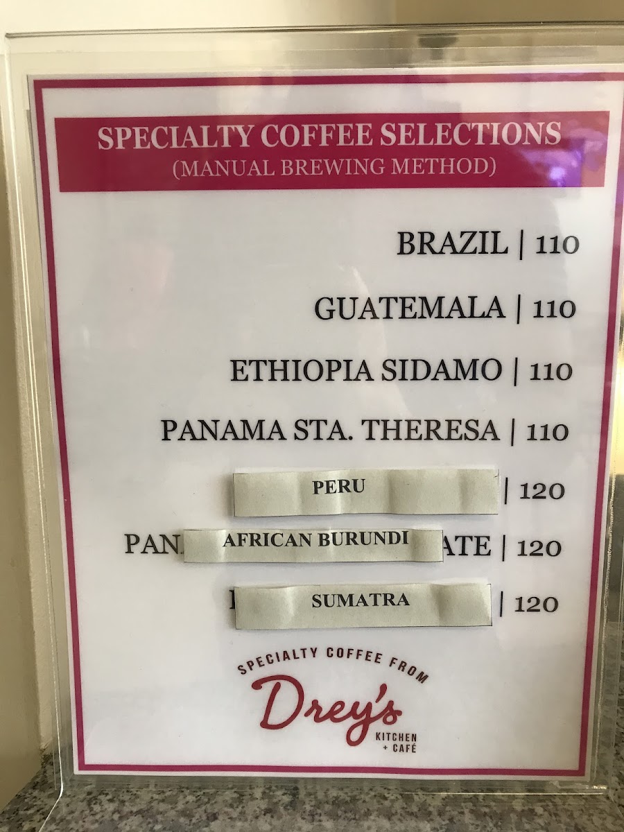 Drey's Kitchen + Cafe Menu